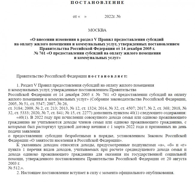 В совокупном доходе не будут учитываться заработок гражданина и выходные пособия. Это касается тех, кто потерял работу, начиная с 1 марта 2022 года, и на момент подачи заявления признан безработным.